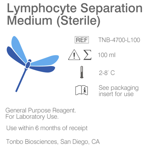 淋巴細(xì)胞分離液 Cat.No.TNB-4700-L100 Lymphocyte Separation Medium (LSM) is a sterile-filtered iso-osmotic solution designed for the in vitro isolation of lymphocytes from diluted whole blood.